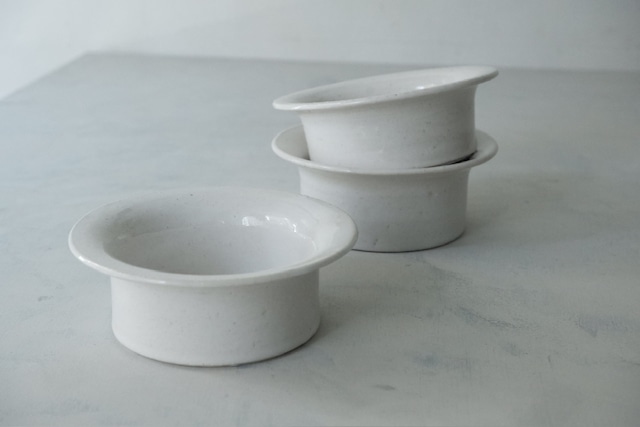 ハットのブリムのようなリムが付いた器です。 汁気のある料理も受け止めつつ、いつもの食卓に少し遊び心をプラスしてくれます。 スープ、サラダ、デザートにもおすすめです。 【ecru(エクリュ)】仏:生成り 白くて艶のある釉薬に、陶土の質感が透ける アンティーク感を感じる仕上げ。 お使いいただくうちにゆるやかに育つ貫入をお楽しみください。 12/30(火)までのご注文は年内発送 年始は1/4(日)より順次発送いたします。 .............................................................................................................................. <size> 約 φ12㎝×H4.5㎝ 電子レンジ/オーブン/直火/食洗機 ✕ .............................................................................................................................. <作家プロフィール> 額賀香織 / Kaori Nukaga 埼玉県生まれ 2004 愛知県窯業高等技術専門学校 修了 2010 岐阜県土岐市にて築窯