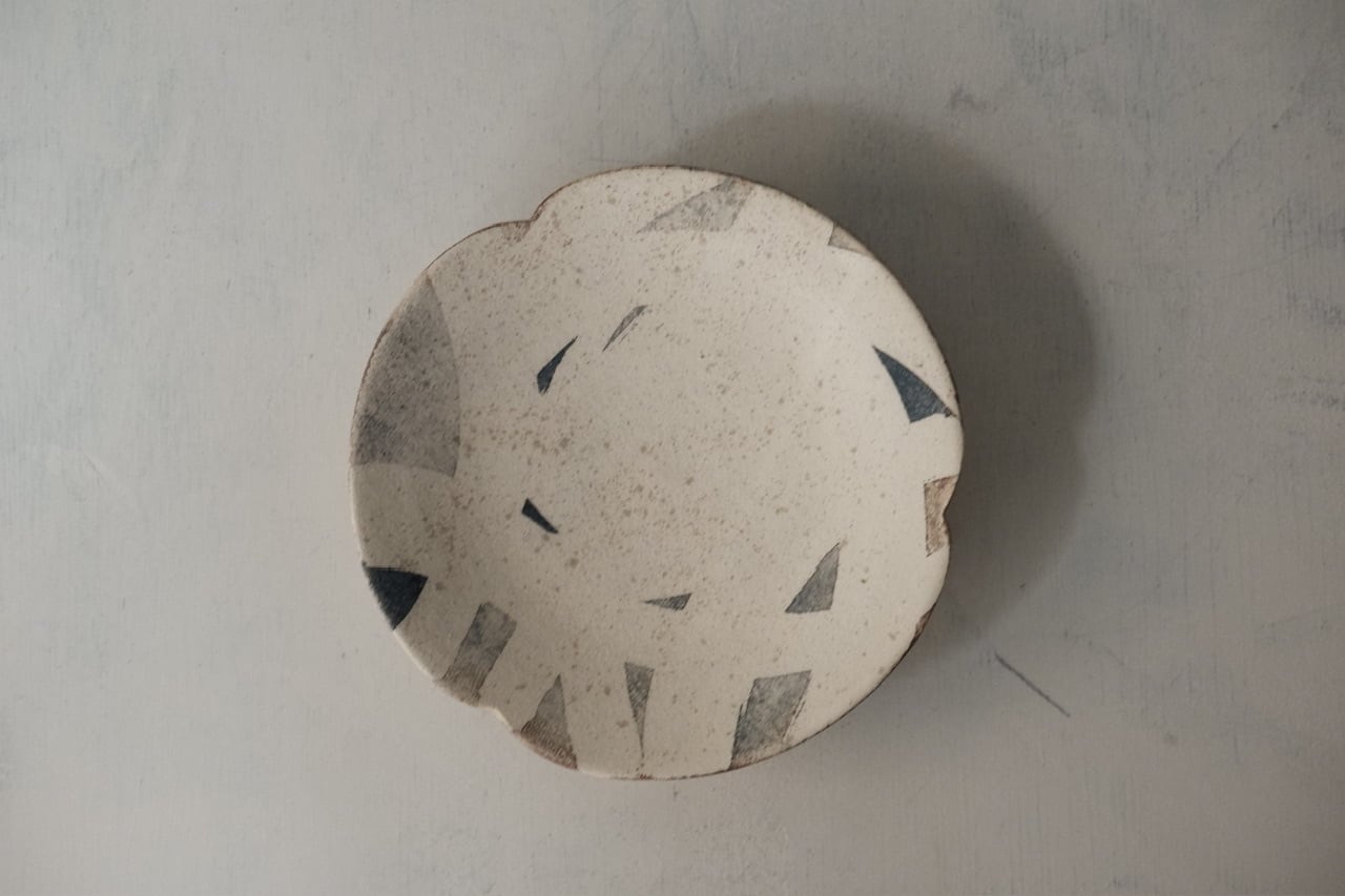三枚の花びらを思わせる、やわらかな曲線を描く小皿。