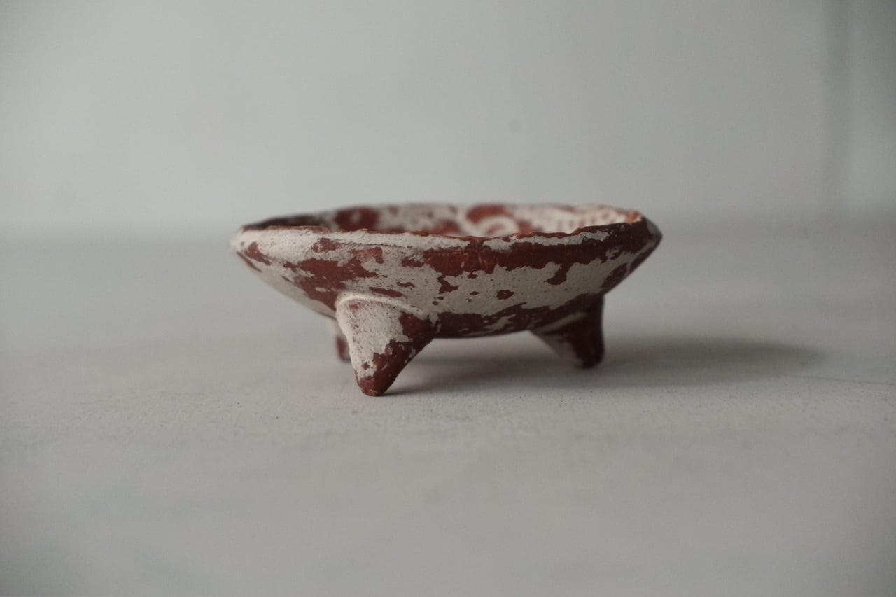 高台のかわりに三つの足を持つ、小さな高杯のようなうつわ。