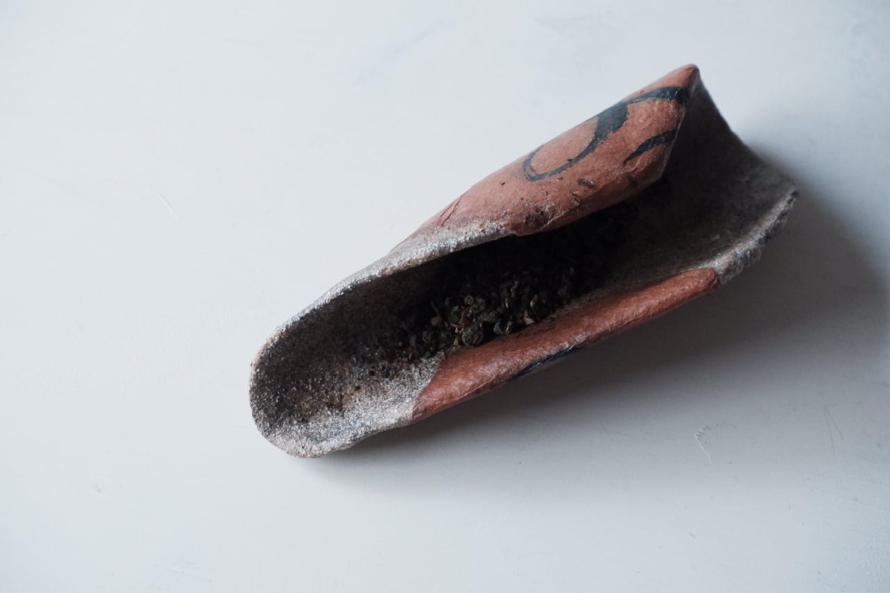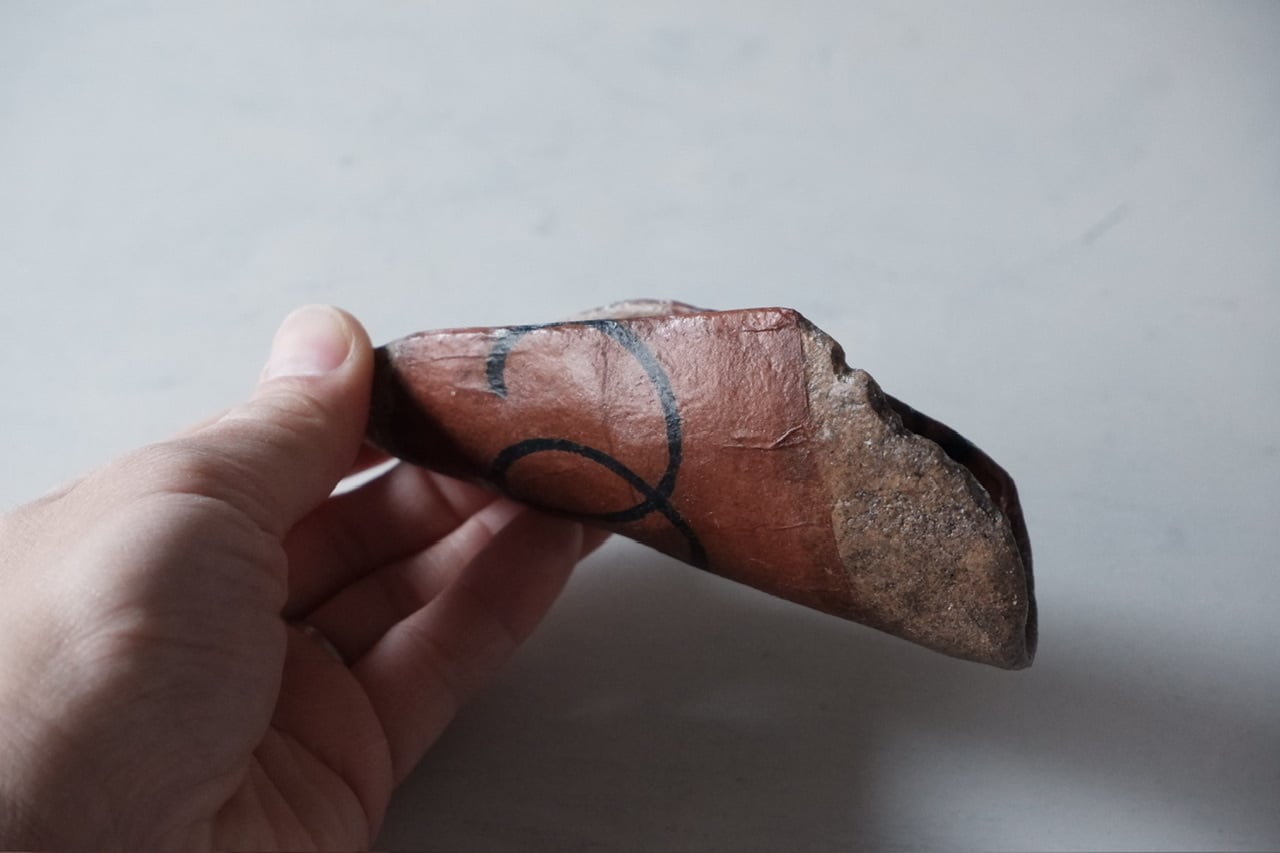 陶器を天然染料を用いて染めたり、染めた紙や布で装飾しております。
