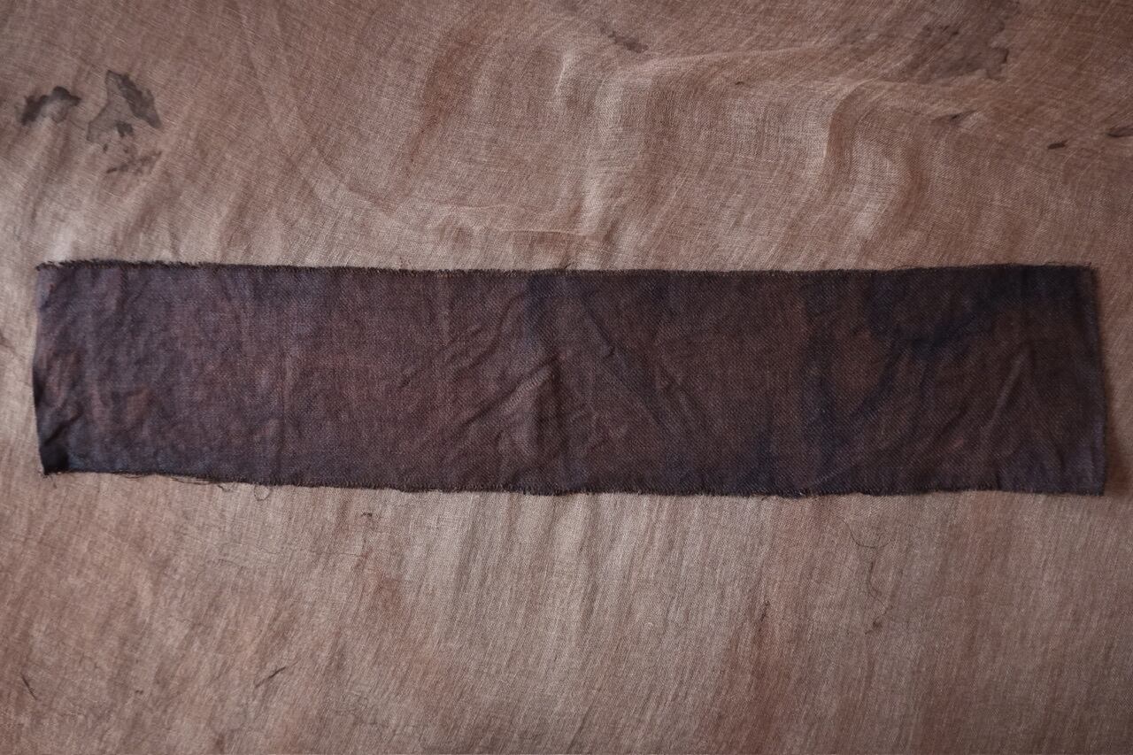 自らの手の感覚を頼りに、染色だけでなく蝋引きや縫いあわせ、風化と言った加工工程も組み合わせ作品をつくる。