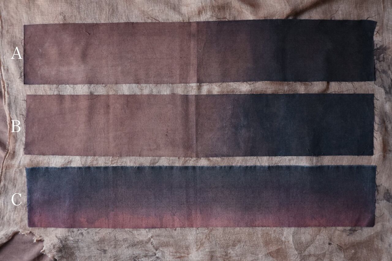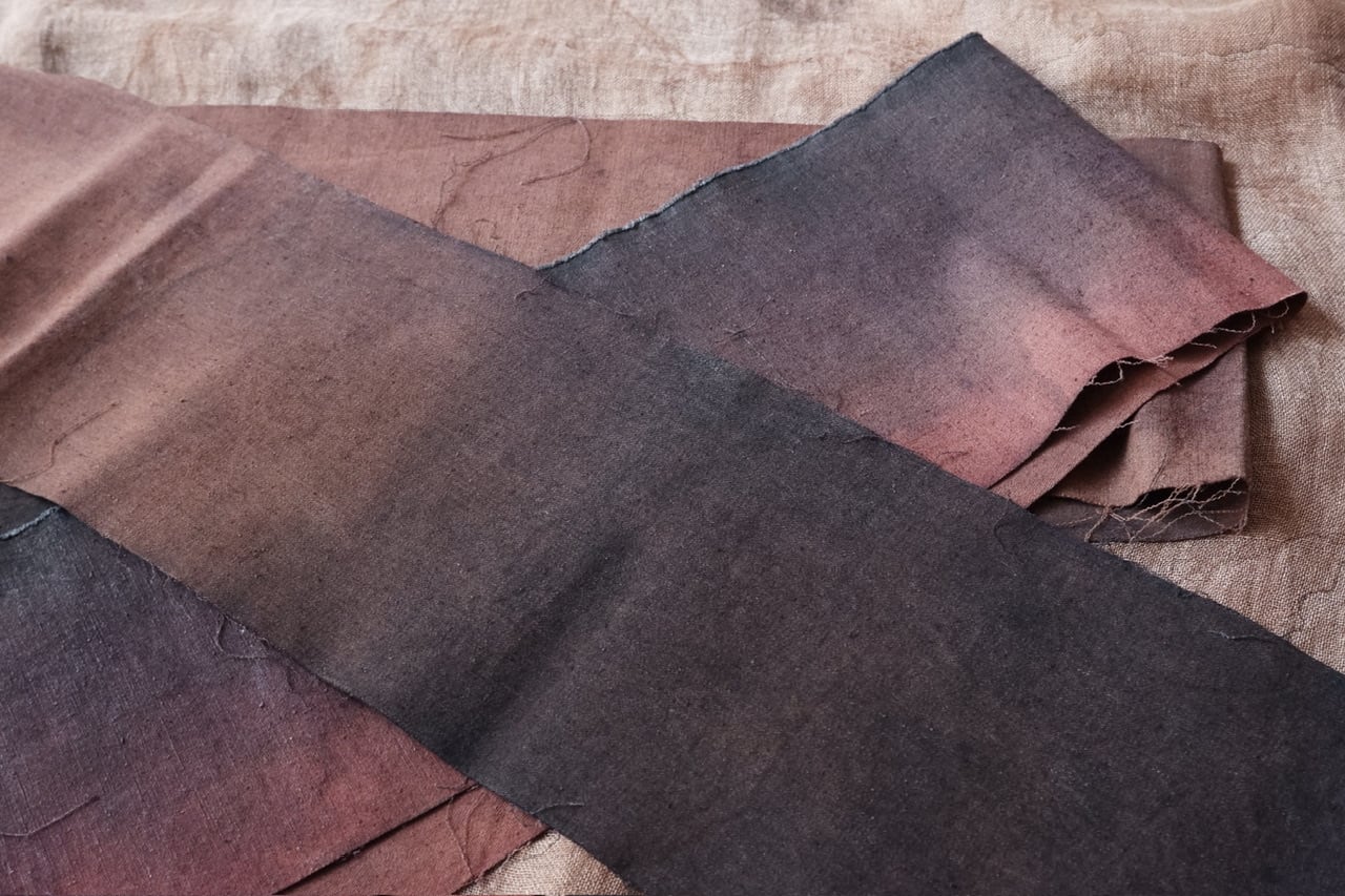 藍や柿渋など天然染料を用いた染色法を独学で学び