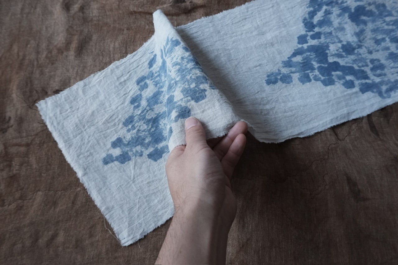 藍や柿渋など天然染料を用いた染色法を独学で学び