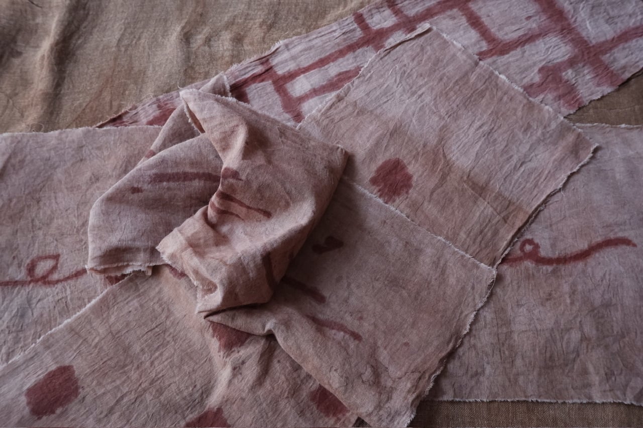 藍や柿渋など天然染料を用いた染色法を独学で学び
