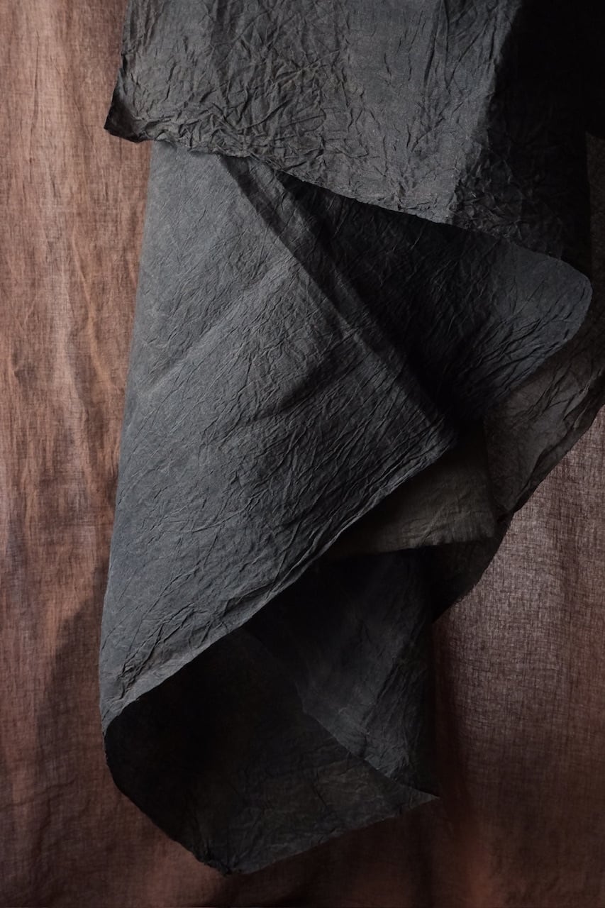 自らの手の感覚を頼りに、染色だけでなく蝋引きや縫いあわせ、風化と言った加工工程も組み合わせ作品をつくる。