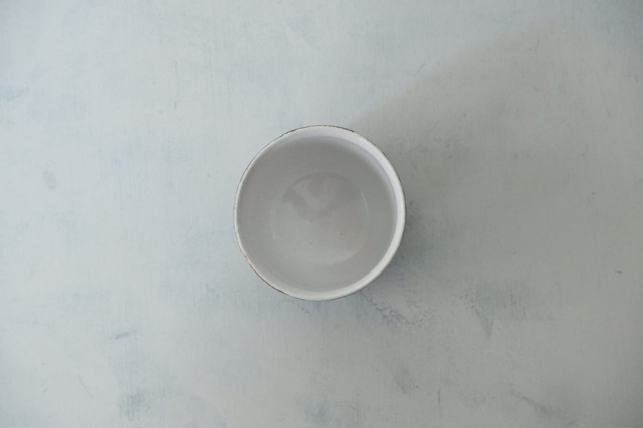 白くて艶のある釉薬に、陶土の質感が透ける