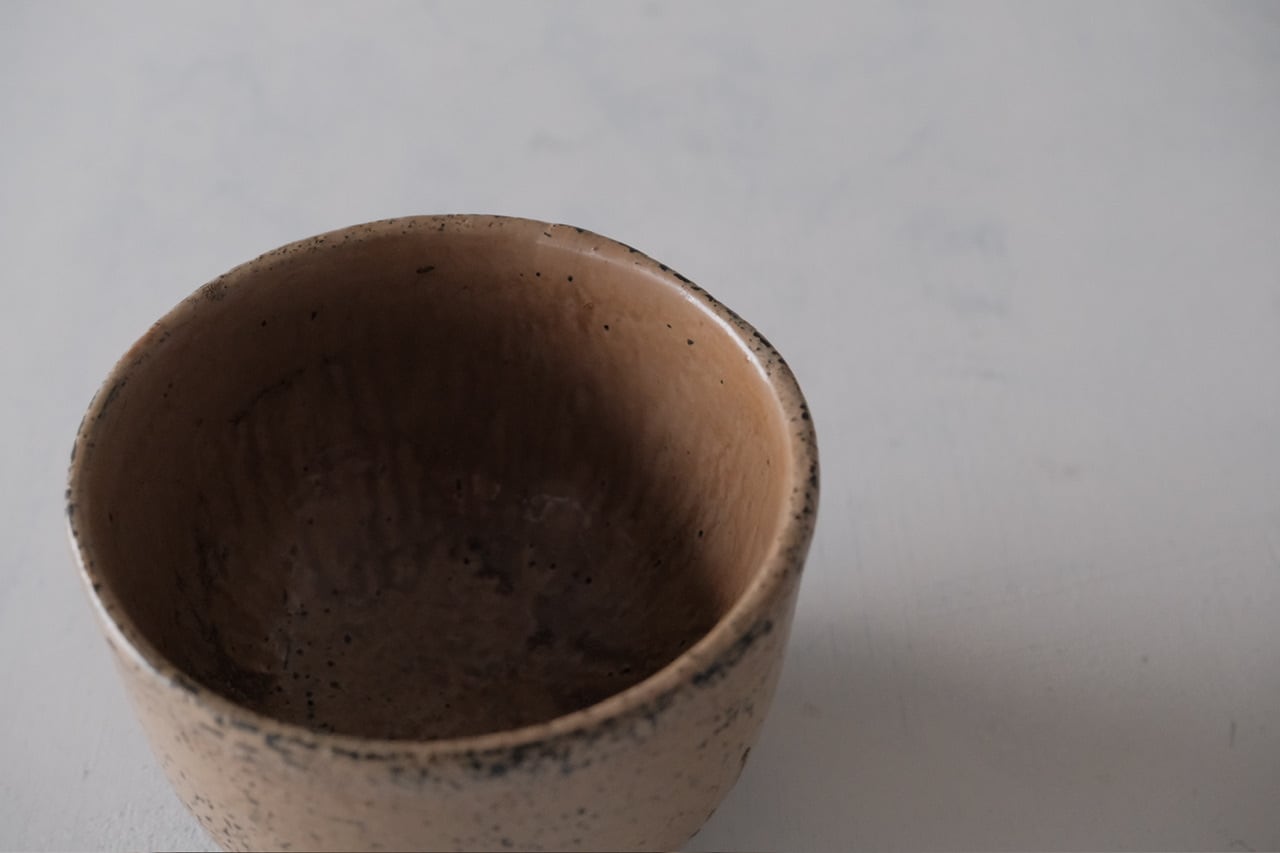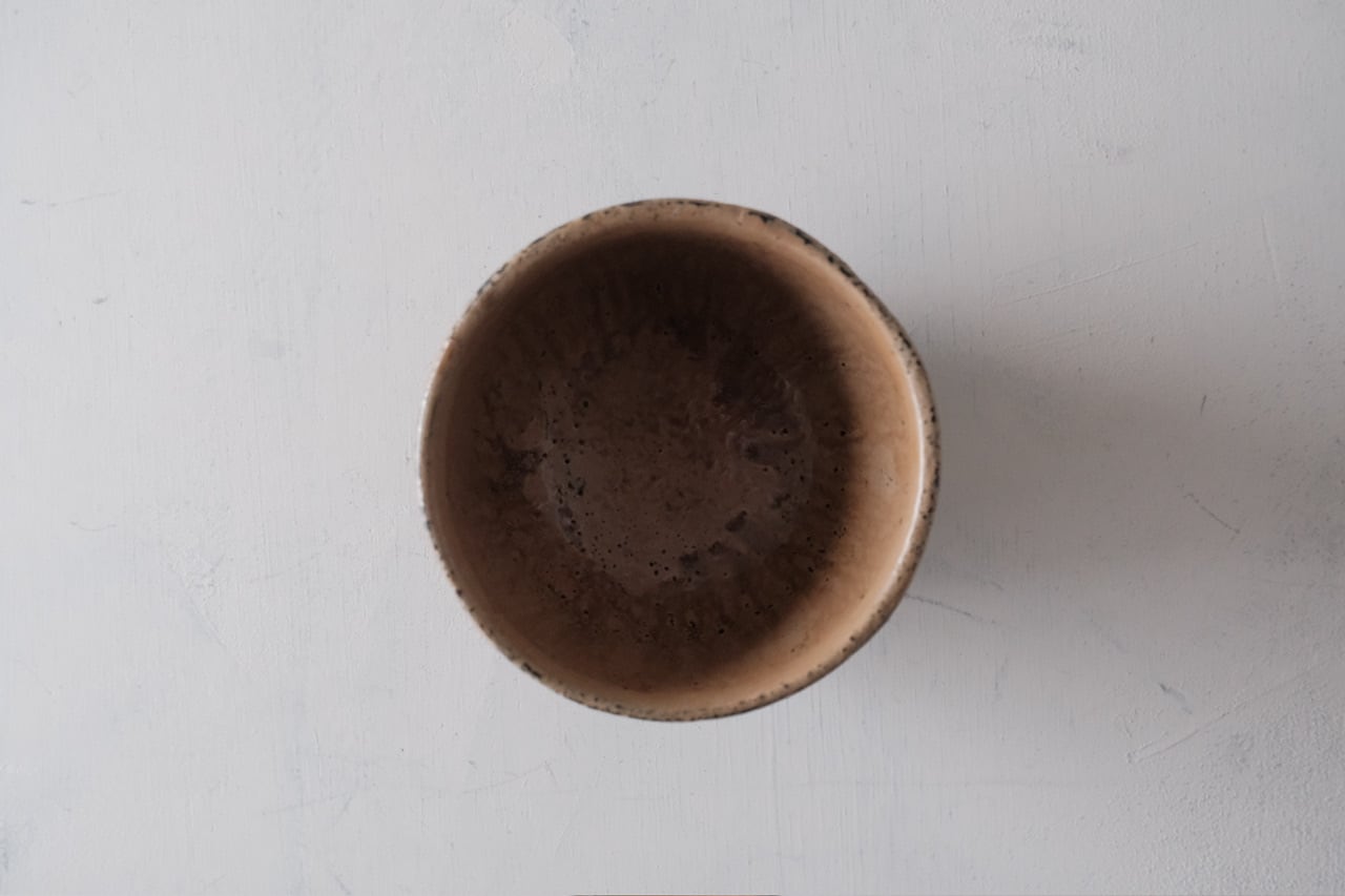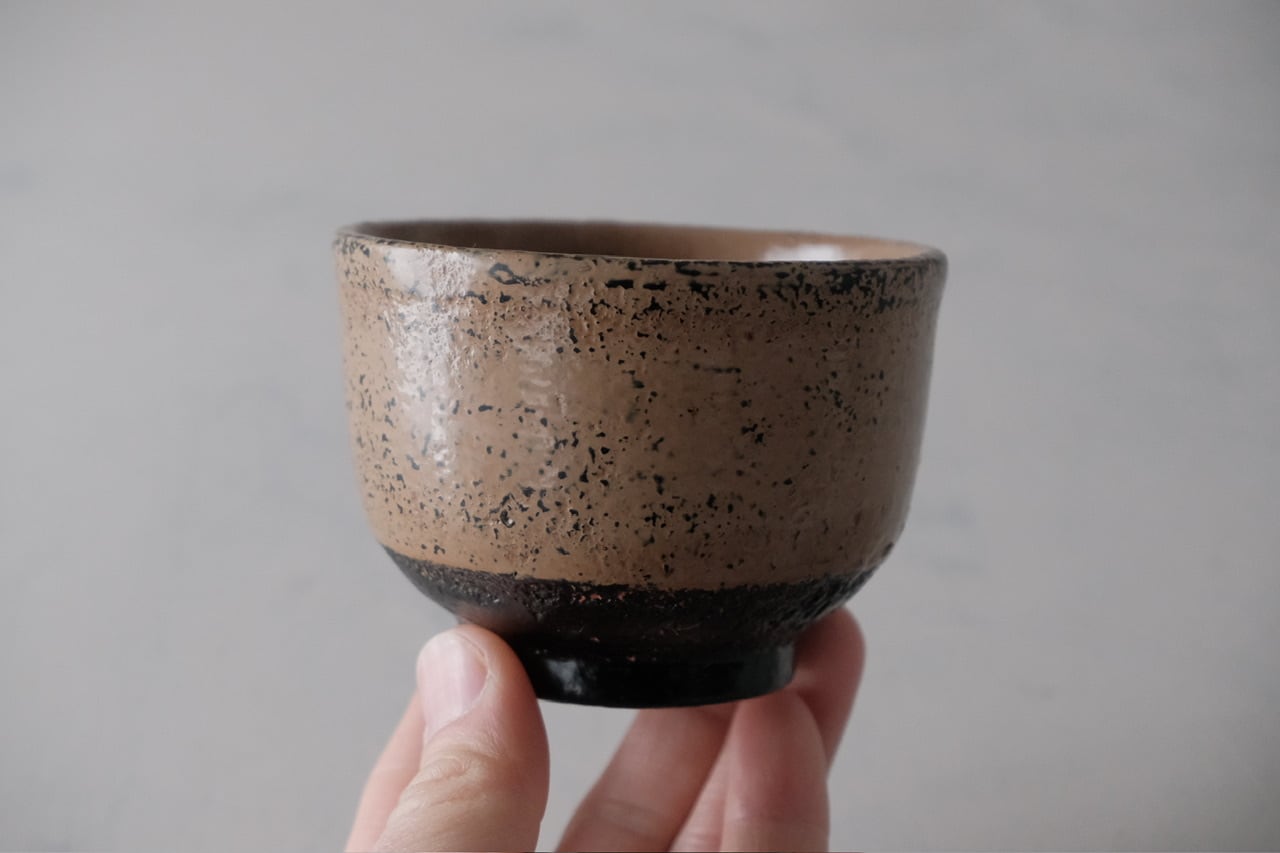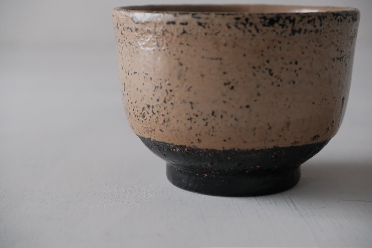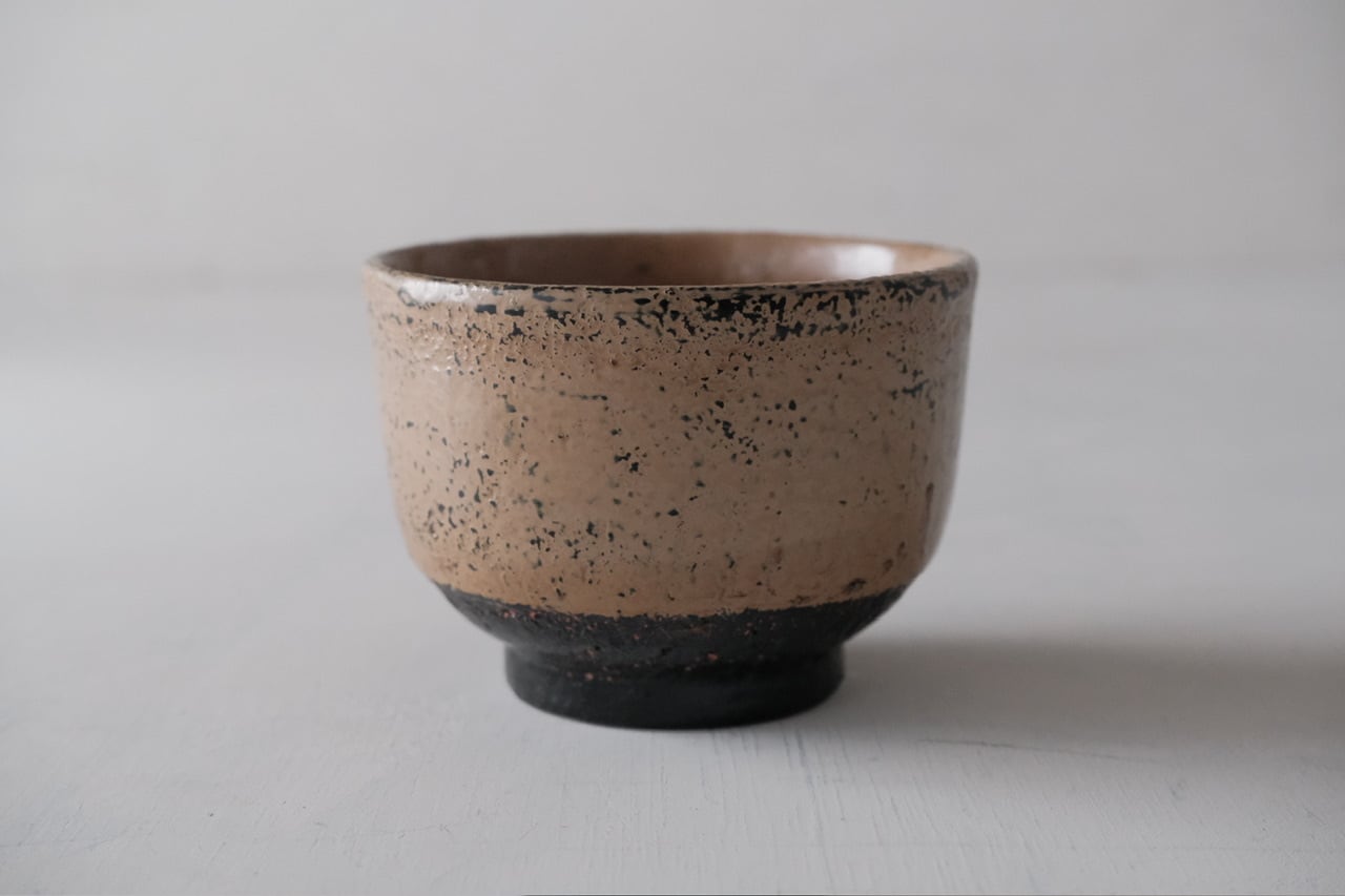 白漆を基調に、高台のみ黒で仕上げたカップ。